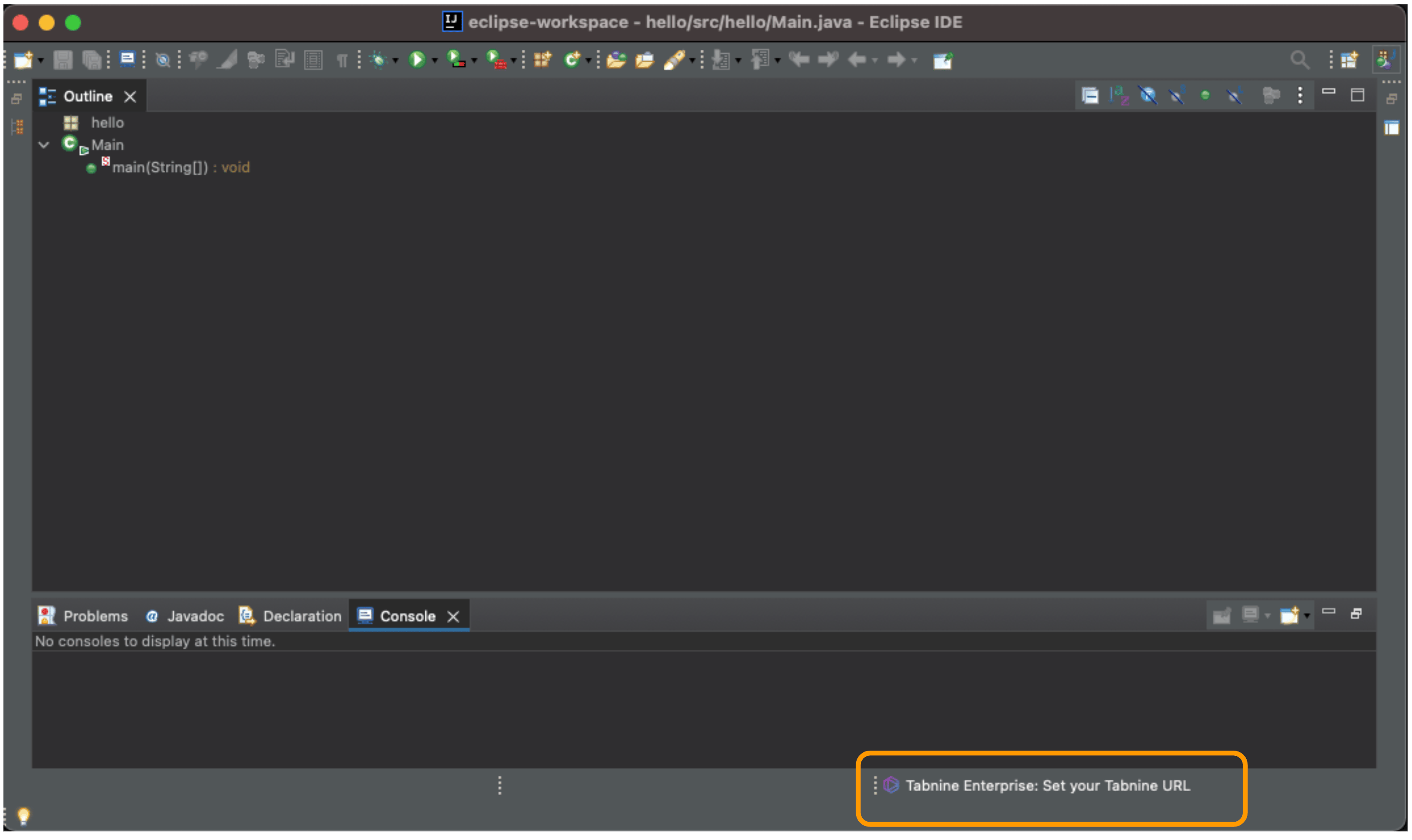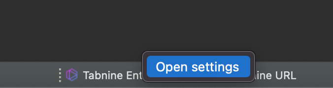 1. After your IDE restarts, you'll see the Tabnine logo on the status bar with a message requesting that you set the Tabnine Enterprise Server URL: