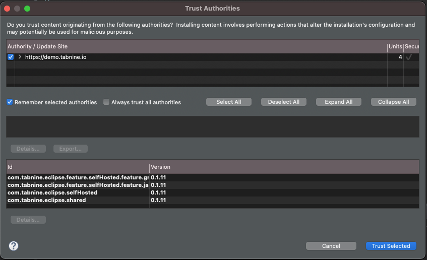 7. Under **Authority / Update Site**, select your site and click **Trust Selected:**