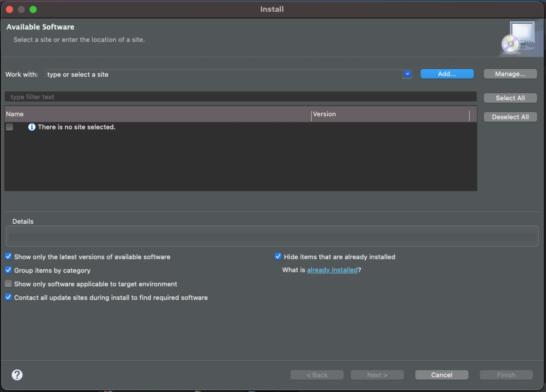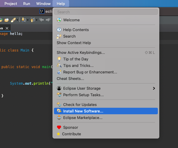 1. In Eclipse, go to **Eclipse** > **Help** and select **Install New Software:**