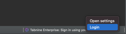 1. Tabnine will ask you to sign in. Click the message and then click **Login:**