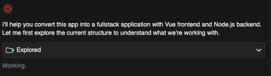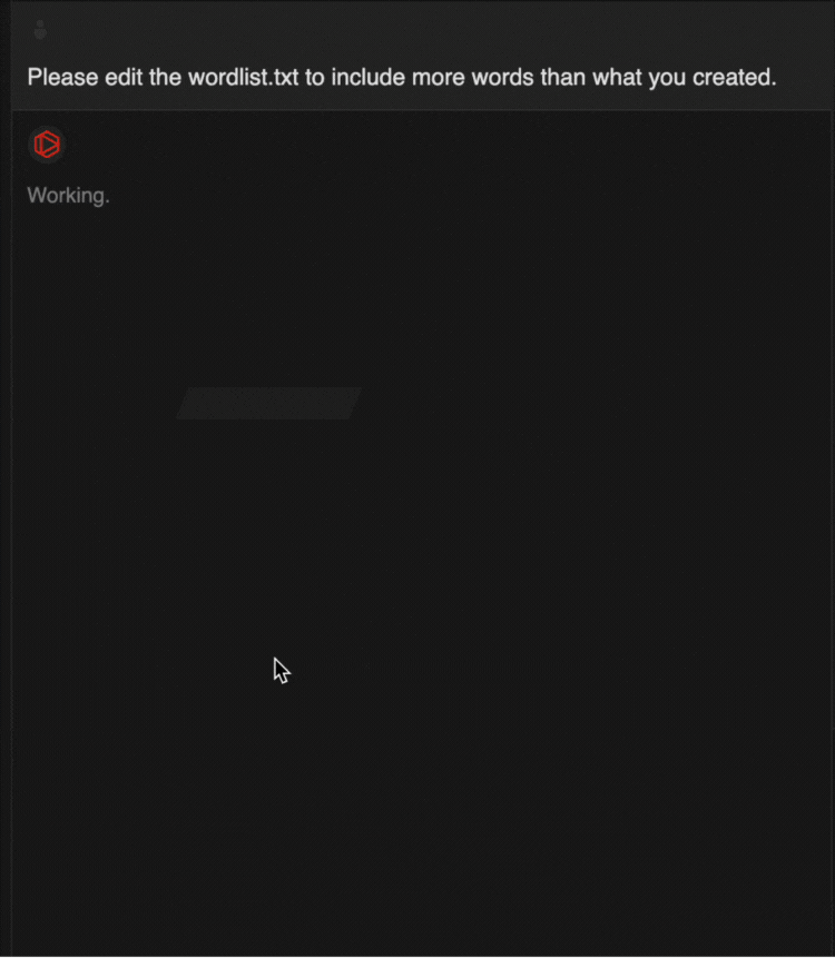 You’ll initially be met by a brief “Working…” message below the red Tabnine logo, followed by a description of what Agent intends to do with its response: