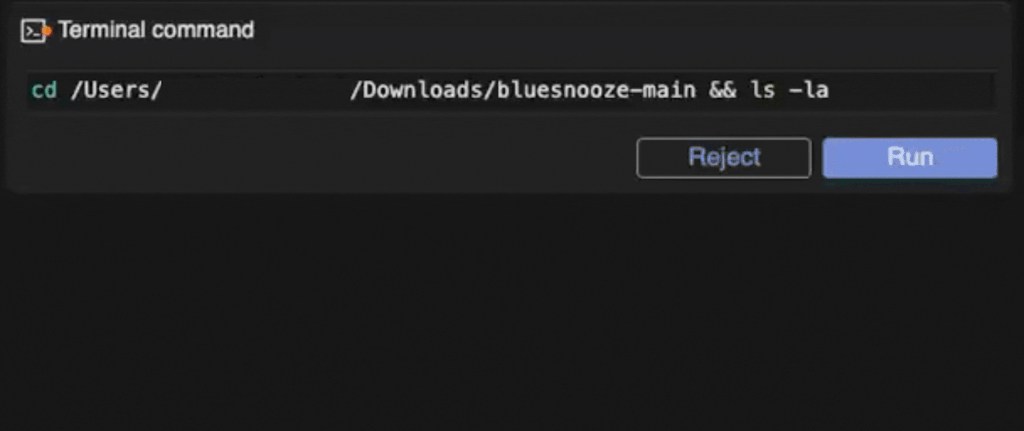If you select <mark style="color:blue;">Reject</mark> the request for whatever reason, Tabnine Agent will then clarify it is unable to finish the task, then list a number of other options.